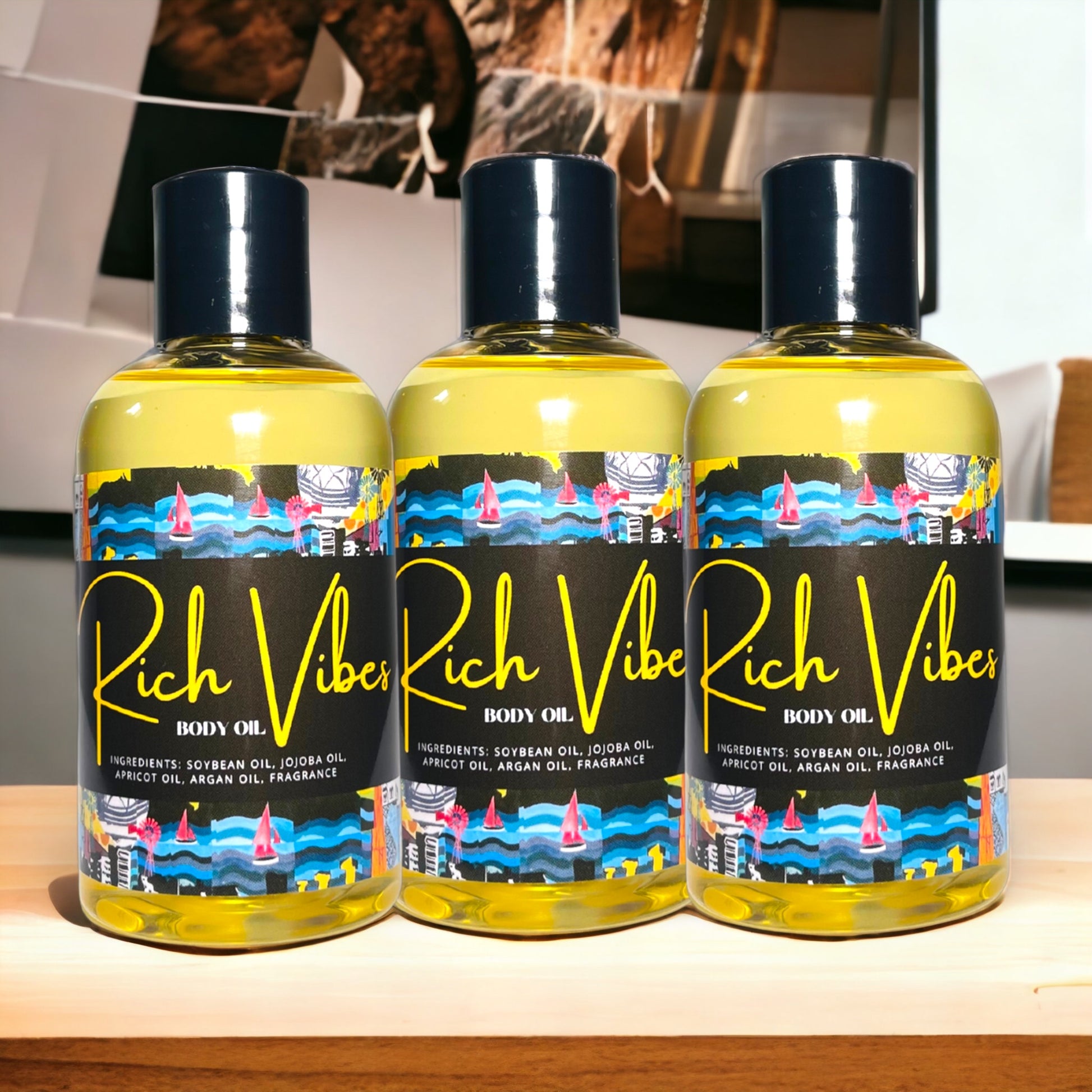 Immerse yourself in the essence of luxury with Rich Vibes Body Oil. Infused with warm notes of amber, frankincense, and myrrh balanced by the sweet allure of strawberry and watermelon, this oil nourishes your skin while elevating your spirit. Its lightweight, silky texture glides on smoothly, locking in moisture and leaving a radiant, non-greasy glow. Experience true self-care with every drop.